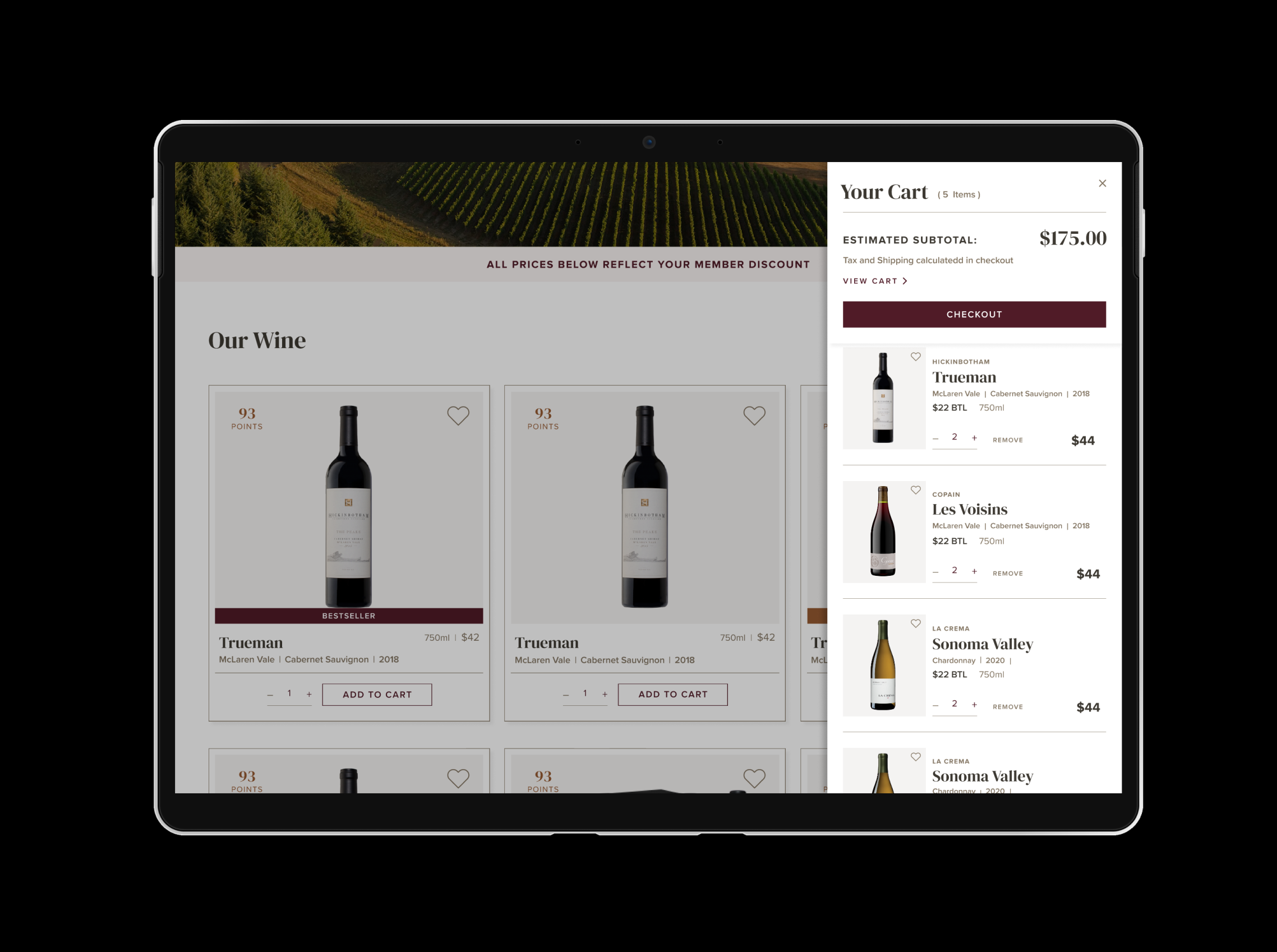We created a template that all 47 wineries can use. Using that template, the wineries will all have a shared flow when it comes to membership, loyalty programs as well as check out. 47 Wineries will be reunited because no cart will be abandoned when shopping at a other Jackson Family winery. Loyalty/membership programs will also be shared with all the 47 wineries.